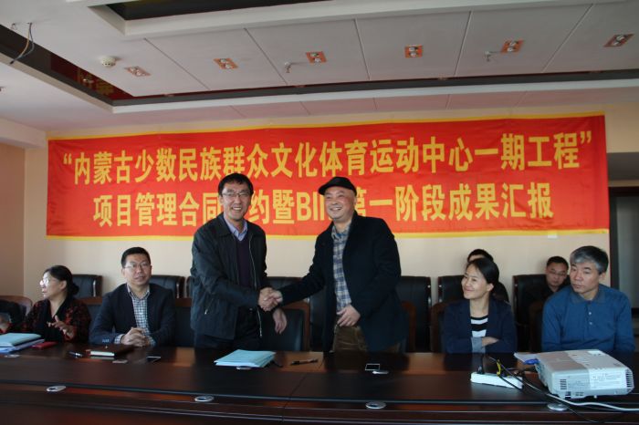 2015年11月26日上午,城發(fā)房地產(chǎn)公司與重慶聯(lián)盛建設項目管理有限公司,就內(nèi)蒙古少數(shù)民族群眾文化體育運動中心項目管理合同進行了簽約。會議中,重慶聯(lián)盛項目管理公司對本項目BIM第一階段成果進行了展示。BIM,即建筑信息模型(Building Information Modeling),是以建筑工程項目的各項相關信息數(shù)據(jù)作為模型的基礎,進行建筑模型的建立,通過數(shù)字信息,仿真模擬建筑物所具有的真實信息。該項目的BIM展示,從結構、外形等方面生動形象地展現(xiàn)了工程情況,優(yōu)點是,可在BIM技術應用過程中及時發(fā)現(xiàn)問題,糾正施工圖設計,減少實際工程中可能的誤差。