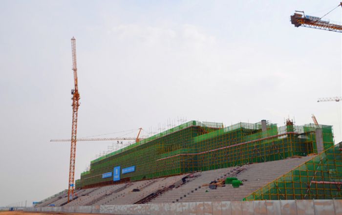項(xiàng)目2016年2月19日開(kāi)工以來(lái),參建單位克服了零下25℃極低氣溫、超厚凍土深度等一系列困難,用11天時(shí)間完成了近10萬(wàn)方土方開(kāi)挖工作,在100天的時(shí)間內(nèi)完成了7千噸鋼筋綁扎及3萬(wàn)余方混凝土澆筑,提前完成看臺(tái)樓、亮馬圈、多功能主樓的主體封頂任務(wù),為順利完成項(xiàng)目奠定了堅(jiān)實(shí)基礎(chǔ)