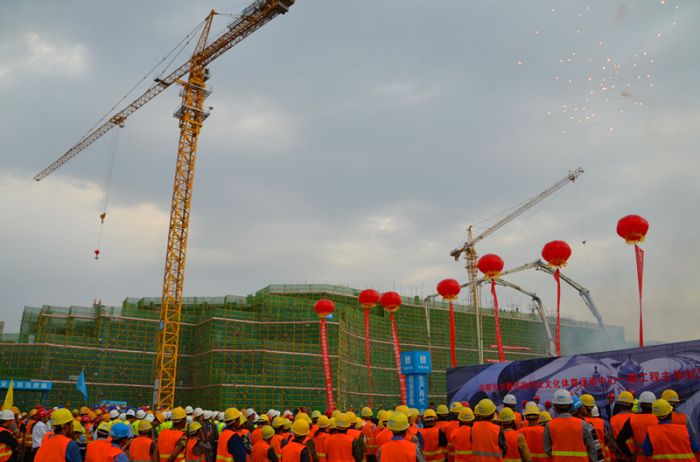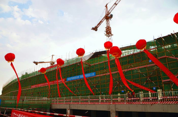 內(nèi)蒙古少數(shù)民族群眾文化體育運(yùn)動(dòng)中心項(xiàng)目一期工程主體封頂