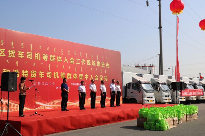 在場的各位領(lǐng)導(dǎo)、貨車司機等工作人員共同聽取了自治區(qū)總工會關(guān)于貨運司機等群體的入會報告后,激情昂揚的宣讀了入會誓詞。自治區(qū)、呼市兩級總工會的各位領(lǐng)導(dǎo)向與會的各單位頒發(fā)了工會會員證,并向入會貨車司機發(fā)放了慰問品。