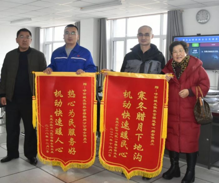 123日上午,東苑小區(qū)兩位用戶(hù)代表來(lái)到金橋分公司贈(zèng)送錦旗,對(duì)金橋分公司快速解決東苑小區(qū)單元樓不熱問(wèn)題表示感謝。