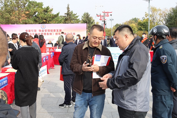 活動(dòng)現(xiàn)場,在公司領(lǐng)導(dǎo)班子成員的帶領(lǐng)下,全體黨員干部通過擺放展板、派發(fā)宣傳資料、提供現(xiàn)場咨詢服務(wù)等方式,大力宣傳了《內(nèi)蒙古自治區(qū)物業(yè)管理?xiàng)l例》,回答群眾關(guān)注的熱點(diǎn)問題,還重點(diǎn)對(duì)前期物業(yè)管理、物業(yè)管理服務(wù)、物業(yè)的使用和維護(hù)等內(nèi)容進(jìn)行了解讀。此外還派發(fā)了《呼和浩特市城市精細(xì)化管理標(biāo)準(zhǔn)手冊(cè)(物業(yè)篇)》、《關(guān)于全面整治全市物業(yè)服務(wù)領(lǐng)域亂象的通告》,讓駐足圍觀的群眾對(duì)物業(yè)服務(wù)管理標(biāo)準(zhǔn)、行業(yè)相關(guān)規(guī)定都有了更深入細(xì)致地了解。活動(dòng)中大家還積極宣傳公司的經(jīng)營發(fā)展理念,同時(shí)加強(qiáng)與兄弟企業(yè)的溝通交流,進(jìn)一步開闊思路,為公司自身的發(fā)展建設(shè)積累寶貴經(jīng)驗(yàn)。